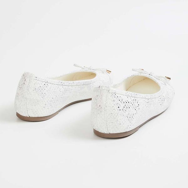Your feet speak a thousand words, make your shoes speak for your style with this textured ballerina detailed with bow detail and a stylish tapered toe structure.